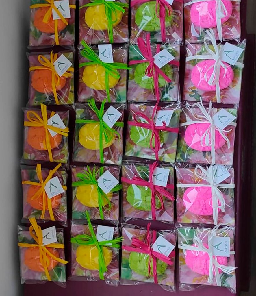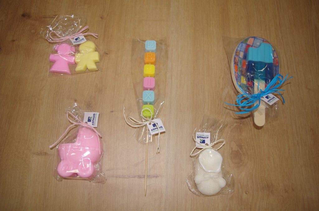 Elaboración artesanal de velas de parafina y parafina en gel, jabones de glicerina, alfileres de solapa de fieltro y cajas decoradas para la correspondencia. El cliente puede establecer el motivo o diseño de las piezas mencionadas. En cuanto a los servicios, se realiza el ensobrado de correspondencia o embuchado de cualquier producto propio o ajeno, además del doblado de camisetas y sudaderas para empresas externas.